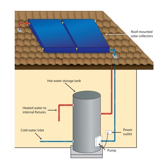This transfers heat from the panels back into the tank, where natural convection allows the hottest water to rise to the top.
